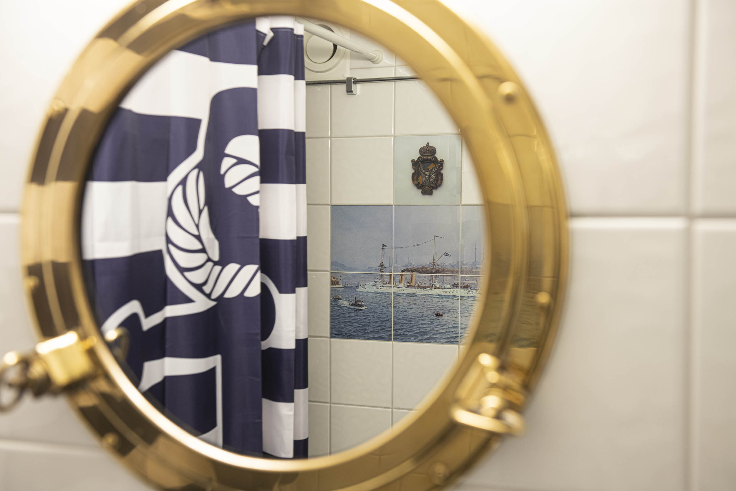 Konsten i rummen är genomgående i marin stil med fartyg och båtar i olika miljöer.