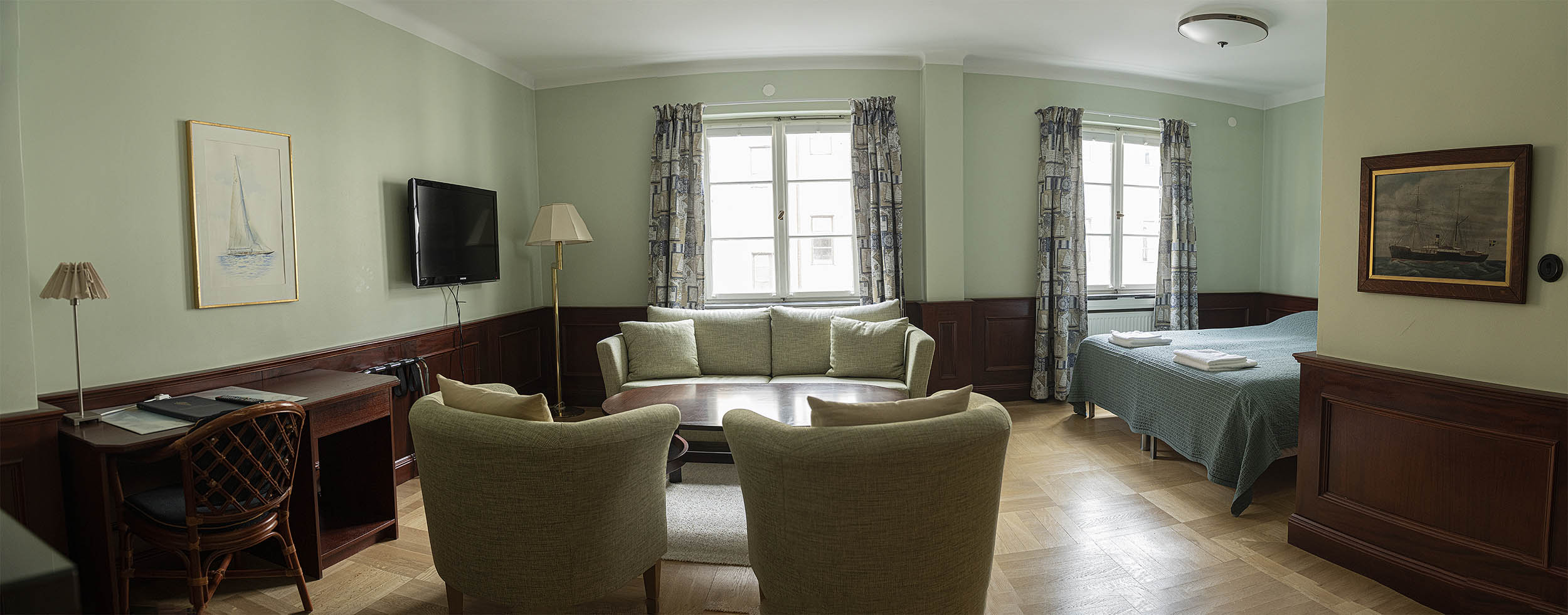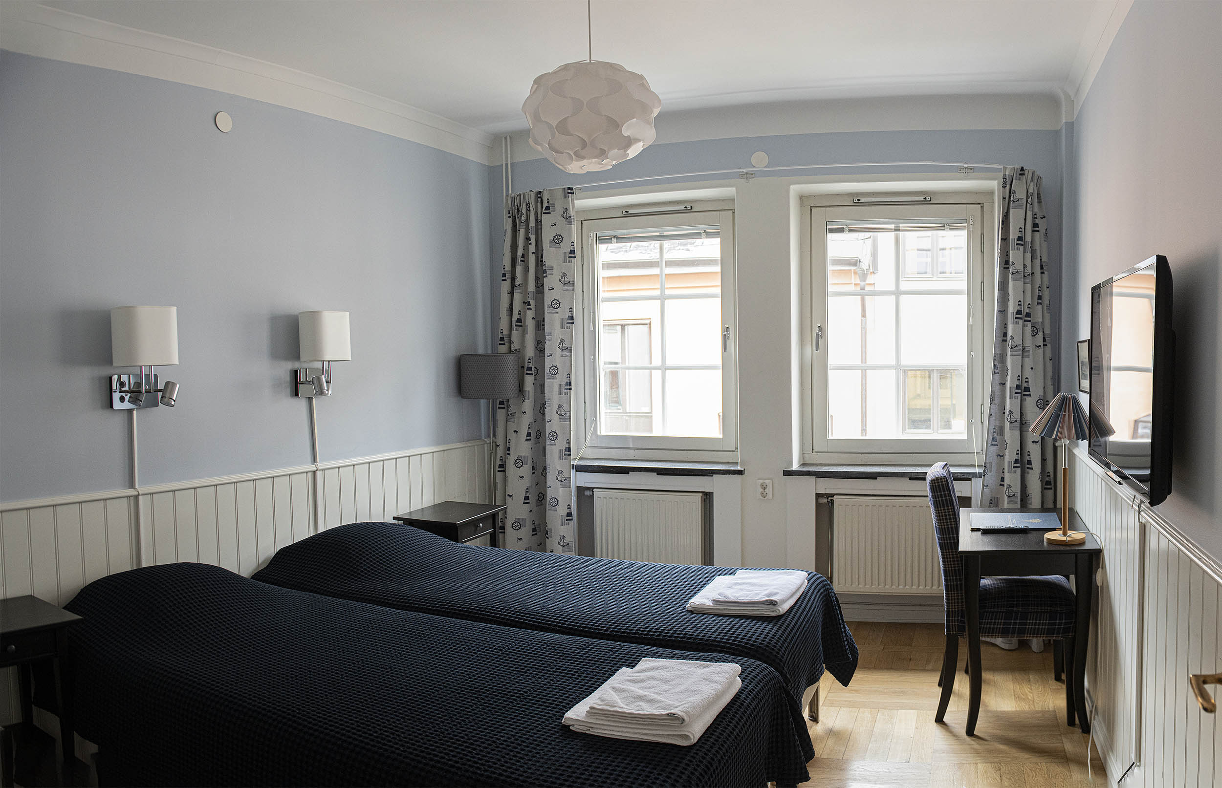 Captain´s single - Enkelrum är mycket bra och prisvärda rum. Rummen är möblerade i rustik marin stil. Konsten i rummen är genomgående i marin stil med fartyg och båtar i olika miljöer. Säkerhetsskåp på de flesta rummen.